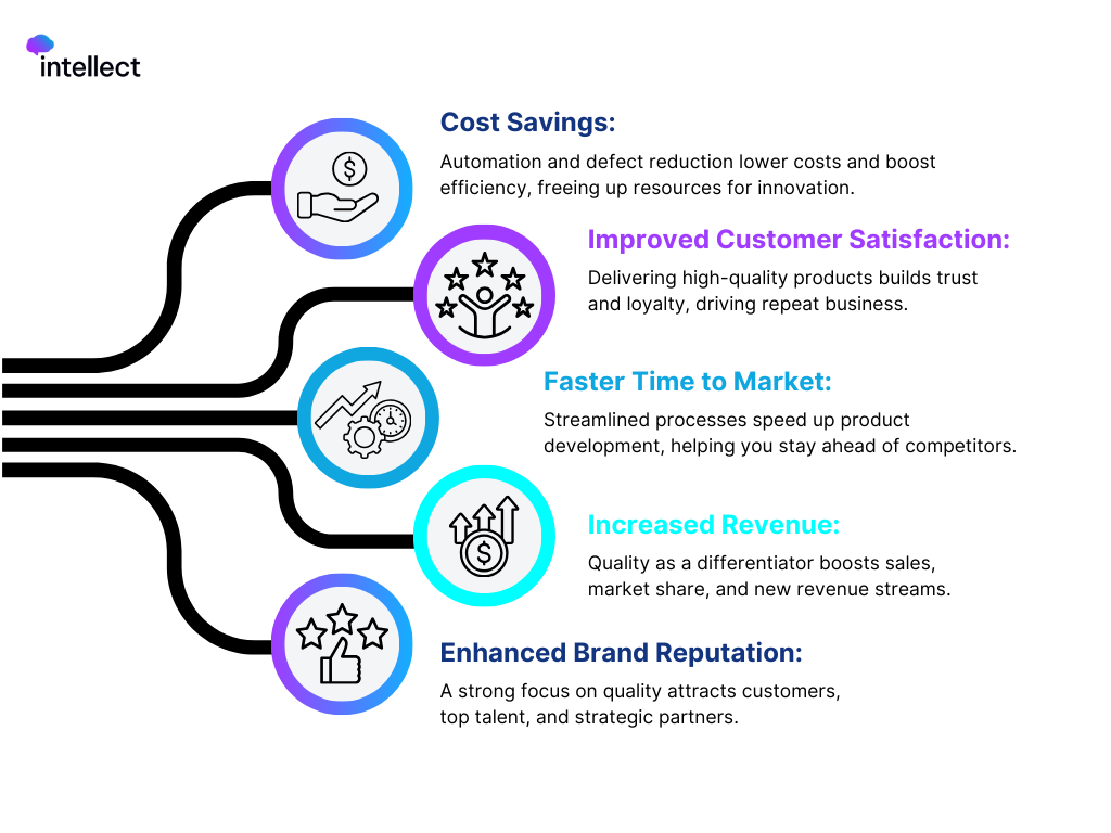 • Cost Savings: Automating workflows and reducing defects lowers operational costs and increases efficiency, allowing you to redirect resources toward innovation and growth.